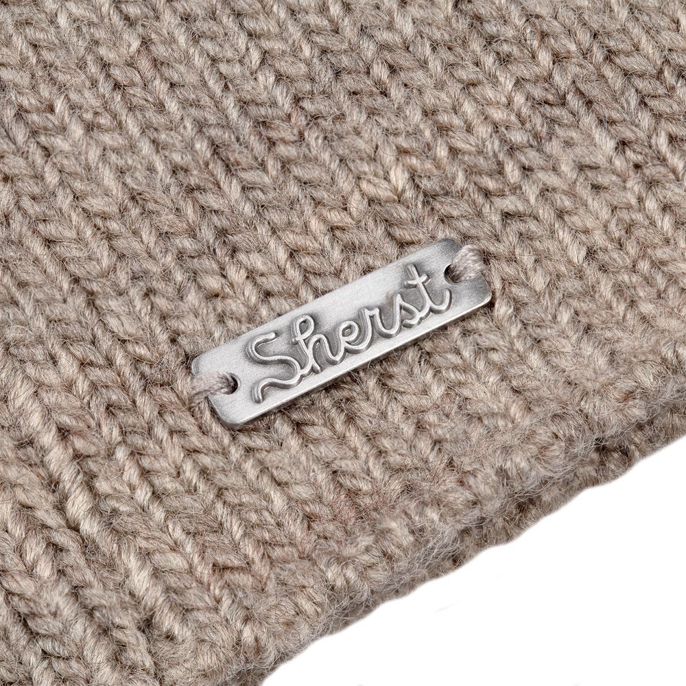 Металлический шильд с названием бренда расположен у заднего шва шапки. Это оставляет место спереди для пришива лейбла или шильдика с логотипом заказчика. -