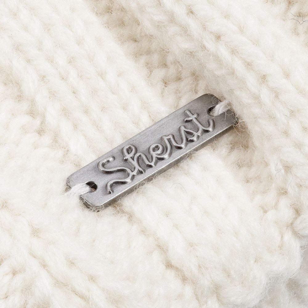 Металлический шильд с названием бренда расположен у заднего шва шапки. Это оставляет место спереди для пришива лейбла или шильдика с логотипом заказчика. -