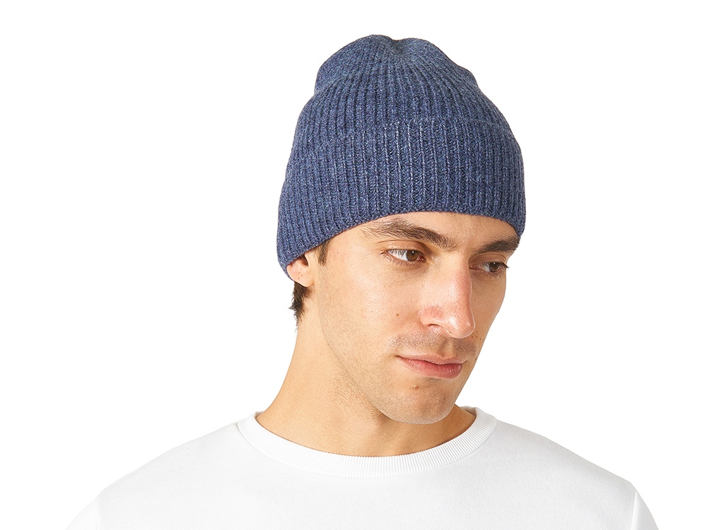 Вязаная шапка из мягкого трикотажа в рубчик. Шапка связана рибом 1х1. -