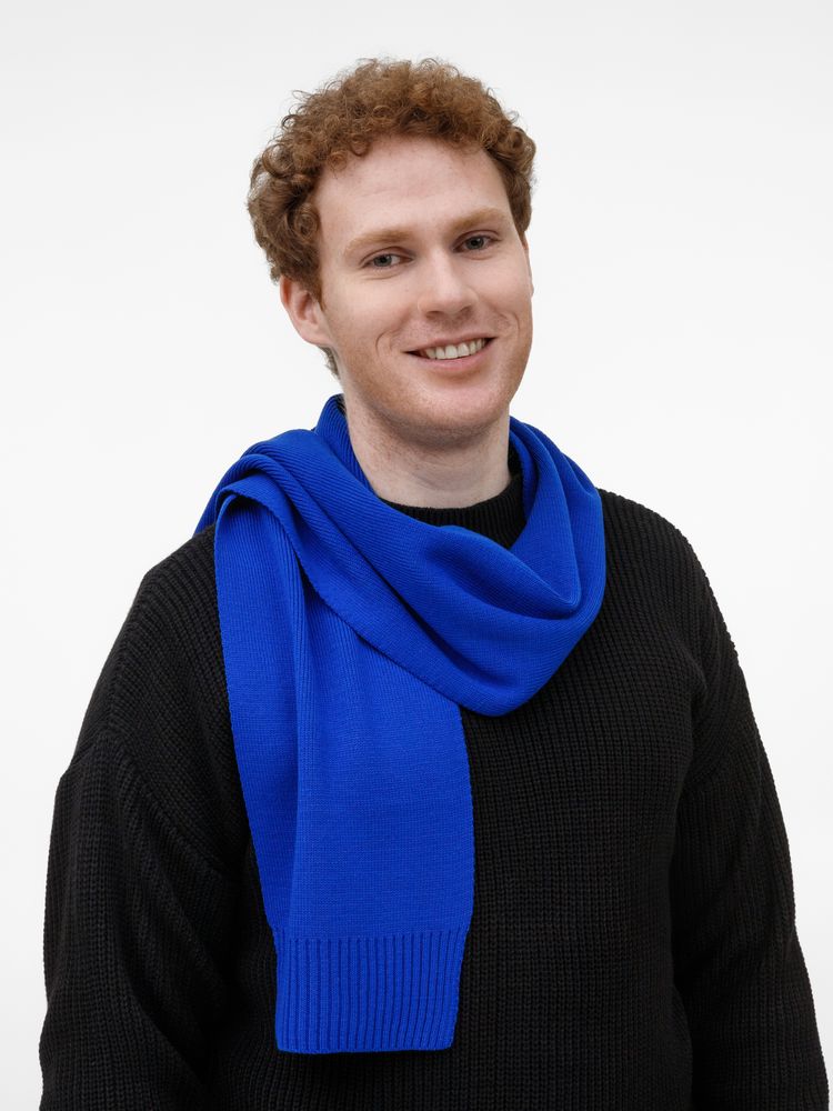 Классический однослойный шарф гладкой вязки. Края, связанные резинкой, придают изделию завершенный и аккуратный вид.