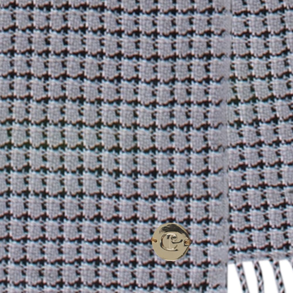 Шарф из высококачественной шерсти с бахромой и узором «гусиная лапка» украшен золотистой эмблемой бренда Cacharel.Поставляется в подарочной упаковке. -