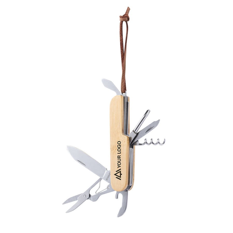 Карманный универсальный нож мультитул с 9 функциями. Механизм сделан из прочной нержавеющей стали, а ручка выполнена из натурального бамбука. Большой функционал, в том числе ножницы, большое и малое лизвие, отвертки шлицевая и крестовая, штопор для вина и консервный нож-открывашка, пилка для ногтей. Дополняет образ крепкого и натурального инстумента ремешок из кожзама. Нож мультитул станет верным спутником и незаменимым помощником для всех любителей путешествий и приключений. Упакован в индивидуальную коробку. -