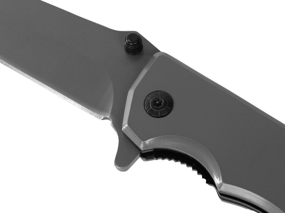 Титановое покрытие корпуса и лезвия защищает от механических повреждений и увеличивает коррозионную стойкость изделия. Нож очень удобен для использования — выступ для быстрого открытия ножа указательным пальцем на ощупь, на лезвии с двух сторон — специальные выступы для открытия большим пальцем, а фиксатор Liner-lock не дает ножу случайно захлопнуться. На рукоятке имеется отверстие для ремешка.