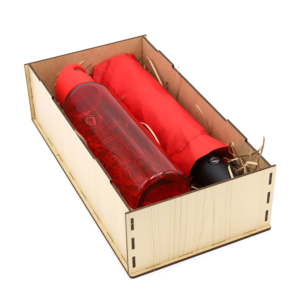 Прекрасный набор станет незаменимым помощником в любом путешествии, командировке или прогулке по городу. Отличный подарок вашим родным, друзьям, любимым и коллегам! Упаковка из древесноволокнистной плиты высокой плотности (ХДФ/HDF) обеспечивает удобство погрузки и разгрузки, сохранность в пути. Состав набора: Упаковка из древесноволокнистной плиты - 1 шт. (Артикул: 53064) Автоматический противоштормовой зонт Vortex - 1 шт. (Артикул: 8004.05) Бутылка пластиковая для воды Sportes - 1шт (Артикул: 14009.05) Наполнитель - стружка бумажная, бежевый – 1 шт. (артикул: 62000.13)- Цвет: Красный