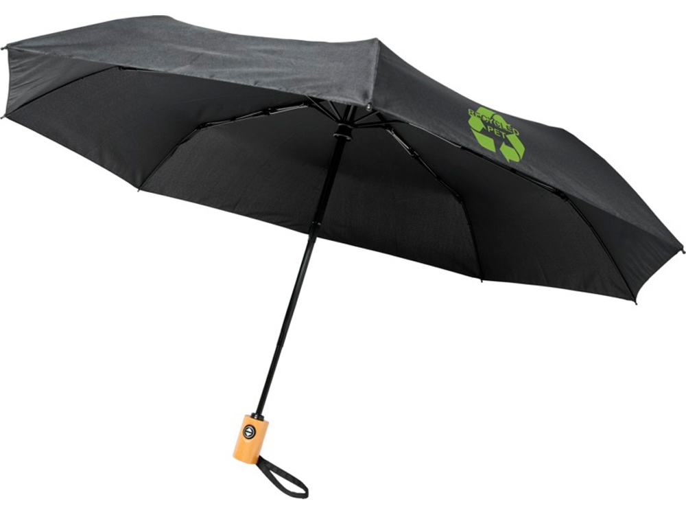Автоматически открывающийся/закрывающийся зонт Bo из переработанного ПЭТ-пластика. Куполом из эпонж полиэстера и переработанного ПЭТ-пластика. Прочный металлический стержень, высококачественная рама со спицами из стекловолокна, обеспечивающая максимальную гибкость в ветреную погоду. Поставляется с чехлом и может легко поместиться в сумку или рюкзак для удобного ношения. -