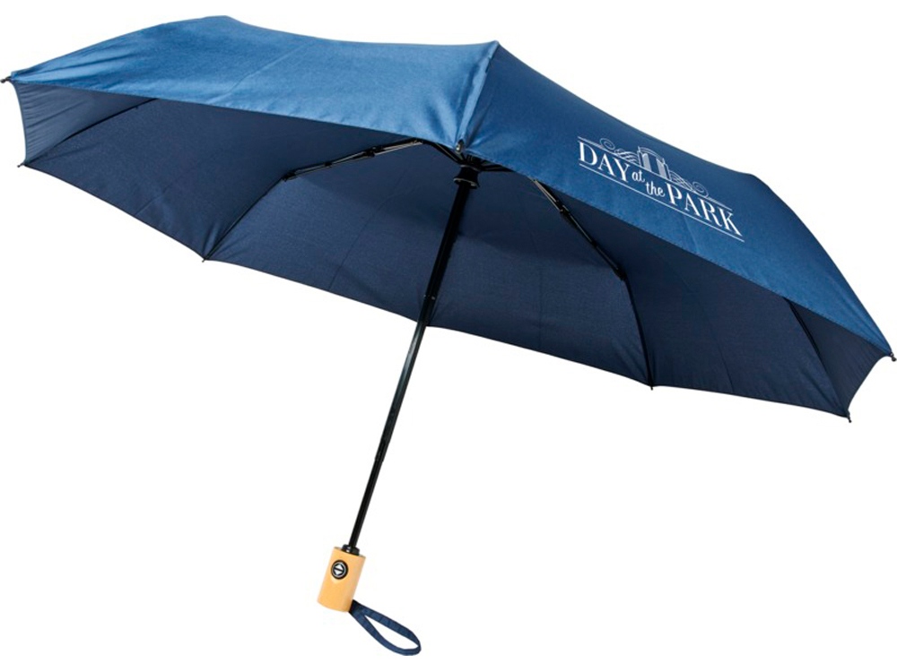Автоматически открывающийся/закрывающийся зонт Bo из переработанного ПЭТ-пластика. Куполом из эпонж полиэстера и переработанного ПЭТ-пластика. Прочный металлический стержень, высококачественная рама со спицами из стекловолокна, обеспечивающая максимальную гибкость в ветреную погоду. Поставляется с чехлом и может легко поместиться в сумку или рюкзак для удобного ношения. -