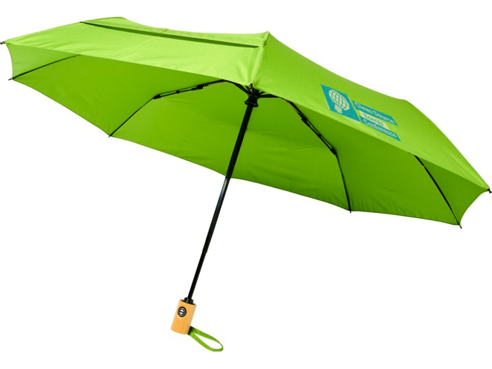 Автоматически открывающийся/закрывающийся зонт Bo из переработанного ПЭТ-пластика. Куполом из эпонж полиэстера и переработанного ПЭТ-пластика. Прочный металлический стержень, высококачественная рама со спицами из стекловолокна, обеспечивающая максимальную гибкость в ветреную погоду. Поставляется с чехлом и может легко поместиться в сумку или рюкзак для удобного ношения. -