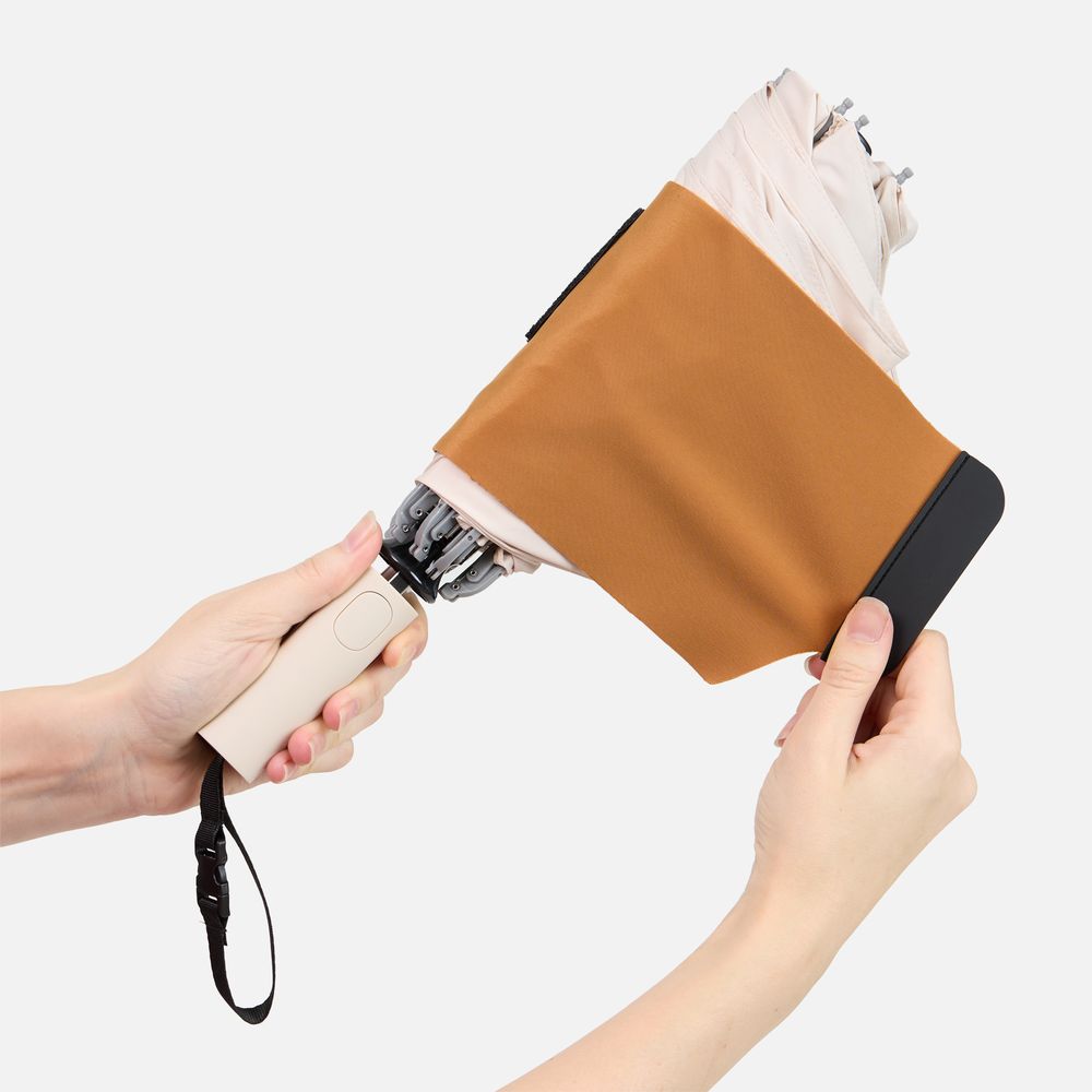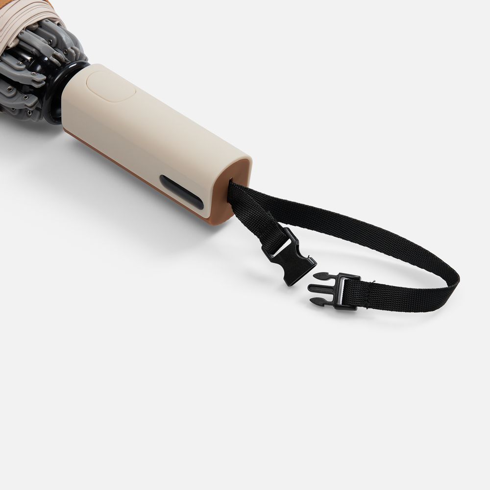 Складываясь после дождя, он прячет мокрую поверхность внутри, а сухая остается снаружи — в закрытом положении зонт не побеспокоит окружающих и не намочит одежду. Благодаря застежке на ремешке, зонт удобно подвесить, например, на рюкзак.