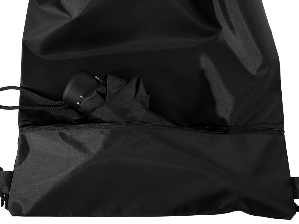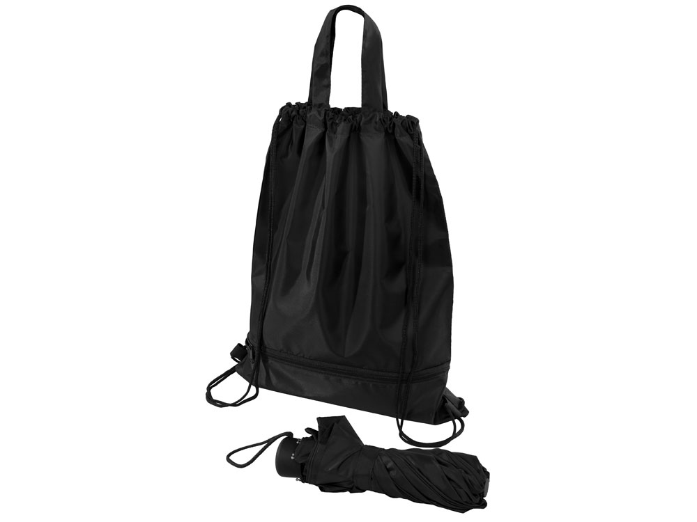 Механический зонт с прорезиненной ручкой идет в комплекте с сумочкой для покупок. На дне сумочки предусмотрен карман на молнии, в котором вы можете хранить зонт дома или прятать в него мокрый зонт, когда вы попали под дождь. Находясь в кармане сумочки, мокрый зонт не доставит неудобств. Сумочка имеет 2 варианта использования: шопер с двумя 2 ручками и рюкзак-мешок со шнурками. -