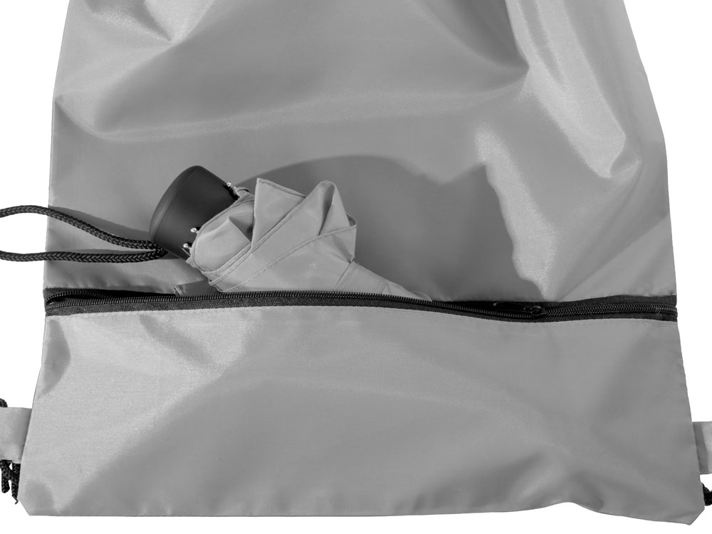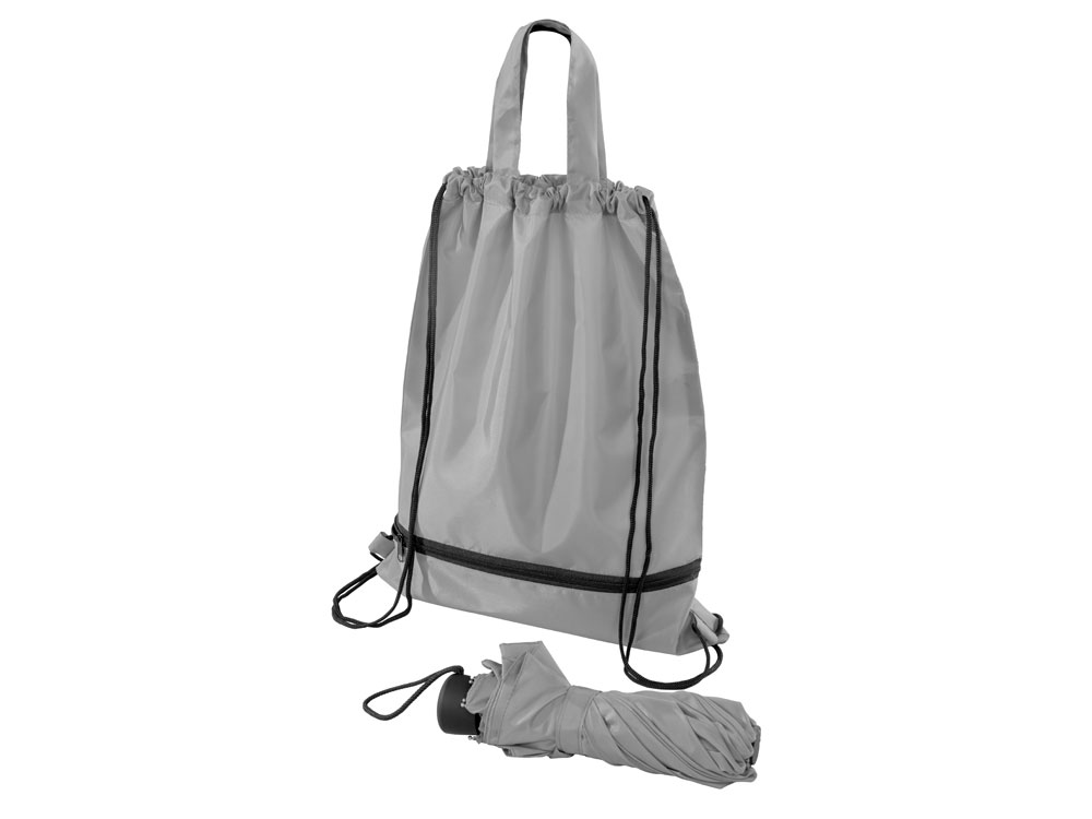 Механический зонт с прорезиненной ручкой идет в комплекте с сумочкой для покупок. На дне сумочки предусмотрен карман на молнии, в котором вы можете хранить зонт дома или прятать в него мокрый зонт, когда вы попали под дождь. Находясь в кармане сумочки, мокрый зонт не доставит неудобств. Сумочка имеет 2 варианта использования: шопер с двумя 2 ручками и рюкзак-мешок со шнурками. -