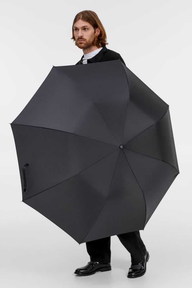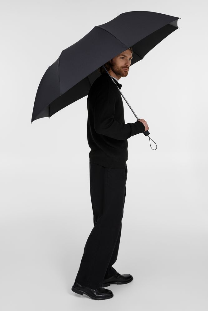- Пластиковая матовая эргономичная ручка с эластичной петлей и кнопкой автоматического открывания зонта