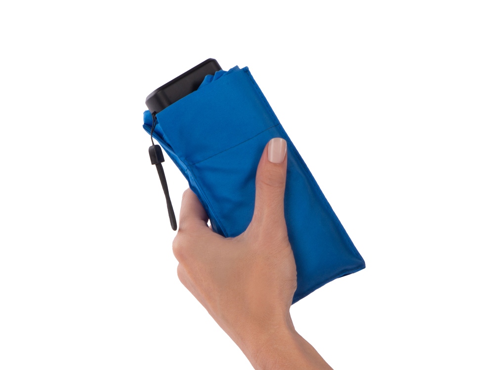 Легкий компактный зонт must have в каждой сумке! Длина в сложенном виде всего 15 см. На ручке из мягкого пластика есть эластичный шнурок для подвешивания при хранении. -