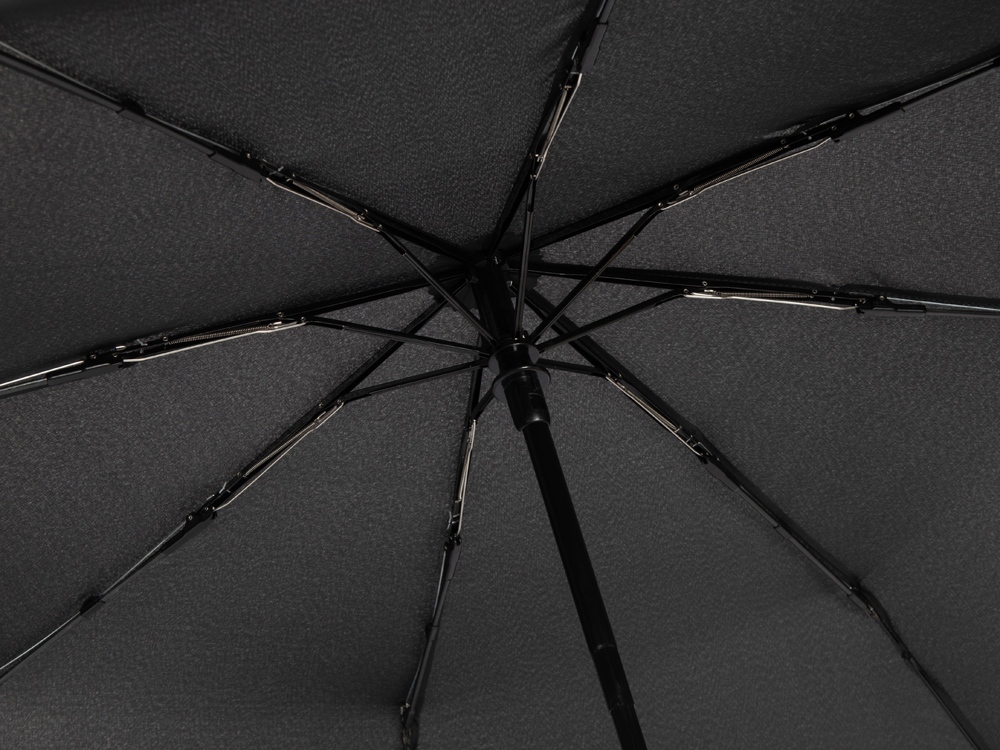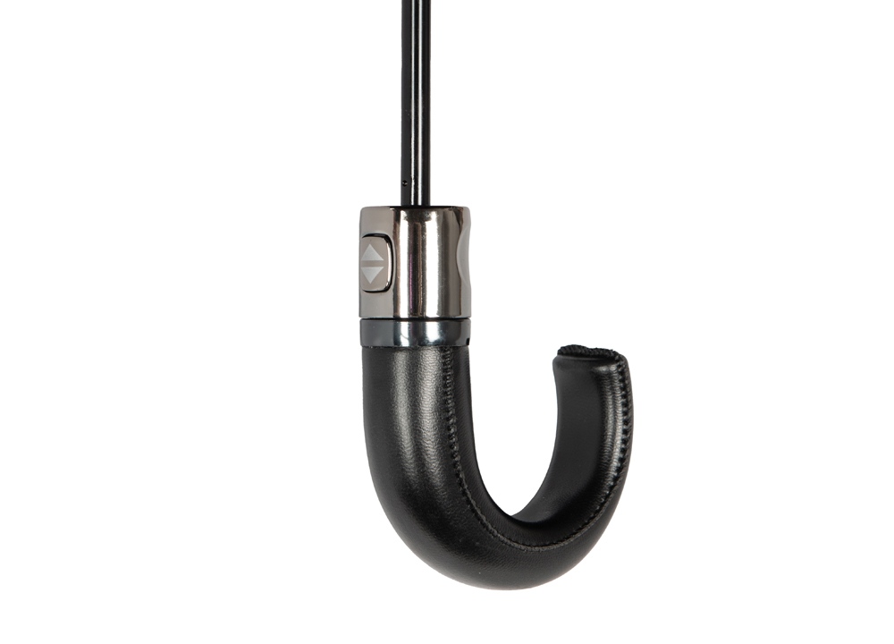 Зонт-автомат для деловых людей отличается стильным лаконичным дизайном с отделкой из искусственной кожи. Благодаря спицам из стекловолокна сможет выдержать порывы сильного ветра. На широкий фиксирующий ремешок можно нанести ваш логотип. -