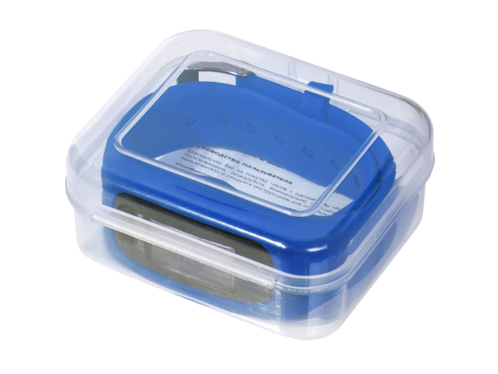Наручные часы с возможностью отображения времени, калорий, шагов и дистанции. Есть переключение между метрической и британской системами измерений. На силиконовом ремешке можно сделать гравировку. Часы упакованы в пластиковую коробку, которую можно использовать для нанесения. Батарейка в комплекте. -