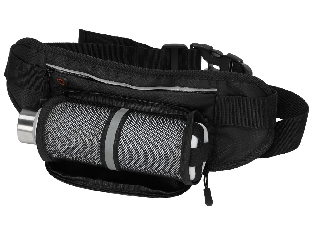 Благодаря светоотражающей полосе сумка сделает вас видимым для водителей в темноте. Во внешнем кармане прячется сетчатое отделение, предназначенное специально для бутылки с водой. При желании в этом кармане можно хранить и другие предметы, ключи или даже телефон. Бутылка не входит в комплект.