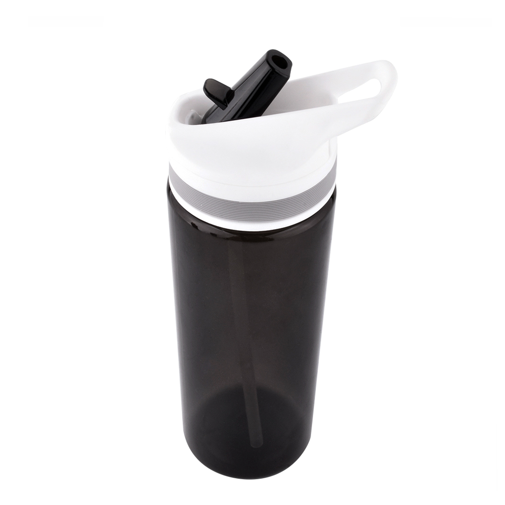 Бутылка для воды Jimy. Крышка бутылки с откидным носиком для питья. Удобно брать с собой. Упакована в полиэтиленовый пакет.- Виды нанесений: УФ-печать А2, Тампопечать большая, УФ-Лак, УФ-Цвет+Лак
