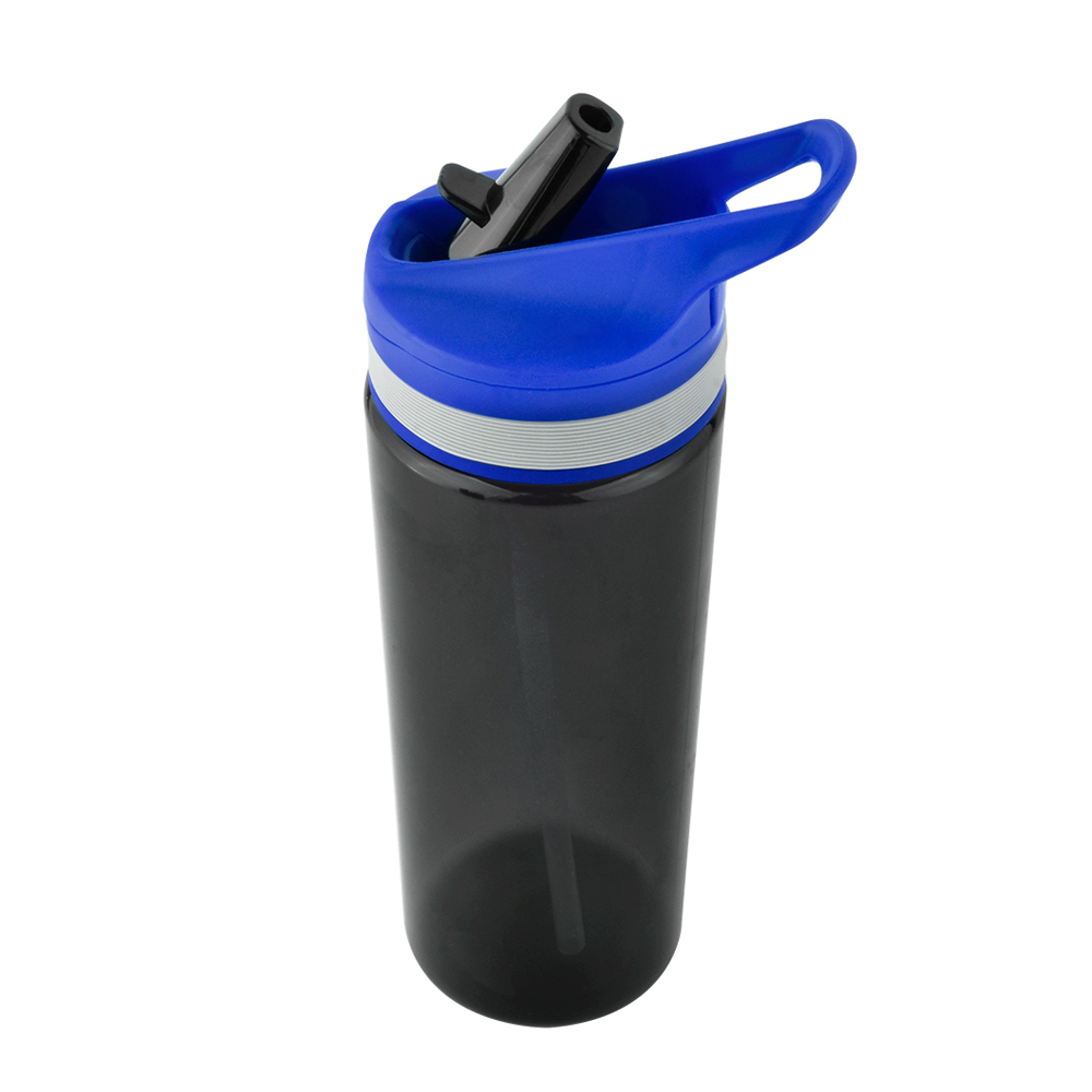 Бутылка для воды Jimy. Крышка бутылки с откидным носиком для питья. Удобно брать с собой. Упакована в полиэтиленовый пакет.- Виды нанесений: УФ-печать А2, Тампопечать большая, УФ-Лак, УФ-Цвет+Лак