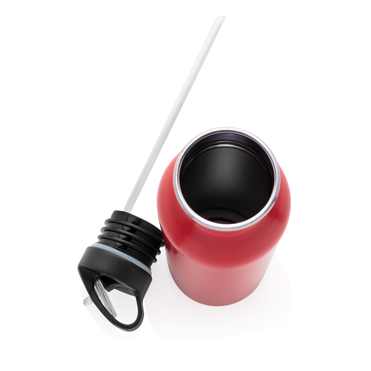 Спортивная бутылка Deluxe — незаменимый атрибут повседневной жизни энергичных людей. Она изготовлена из прочной нержавеющей стали 18/8. Крышка бутылки оснащена удобным дозатором. Благодаря дизайну у бутылки идеальный размер, что позволяет брать ее с собой в спортзал, поход или на прогулку. Внимание! Мы рекомендуем использовать ее только для холодной воды. Объем 710 мл.