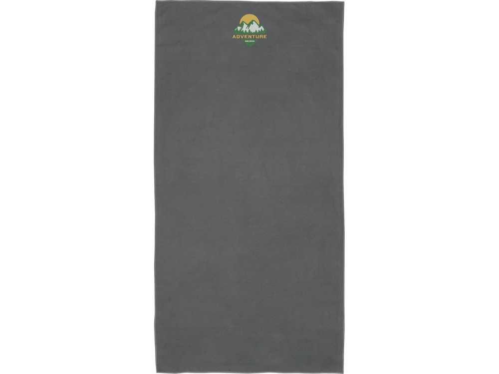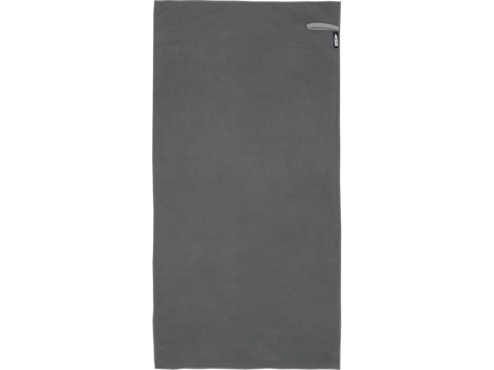 Спортивное полотенце Pieter очень хорошо впитывает влагу, легкое, быстро сохнет, а ткань прочная и очень мягкая. Когда полотенце сложено и закреплено резинкой, оно уменьшается до небольшого размера, поэтому его удобно брать с собой в тренажерный зал, бассейн, на пешую прогулку или в поход. Полотенце размером 50 х 100 см изготовлено из 90 % переработанного полиэстера GRS и 10 % нейлона. Его можно стирать в стиральной машине при температуре 40 °C. В комплект поставки входит мешок для хранения (17 x 13 см), изготовленный из переработанного ПЭТ-пластика, обеспечивающий большую площадь для печати логотипа. 90% Переработанный Полиэстер, 10% Нейлон, 200 g/m2.