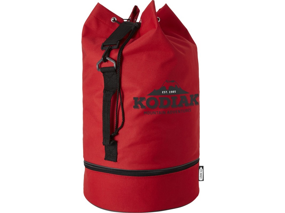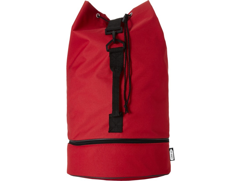 Водонепроницаемый спортивный вещмешок из переработанного РЕТ-пластика с вместительным 20 основным отделением объемом 20 литров, застежкой на шнурке, боковой ручкой и регулируемым плечевым ремнем. Также имеет отдельное нижнее отделение на молнии для небольших предметов. -