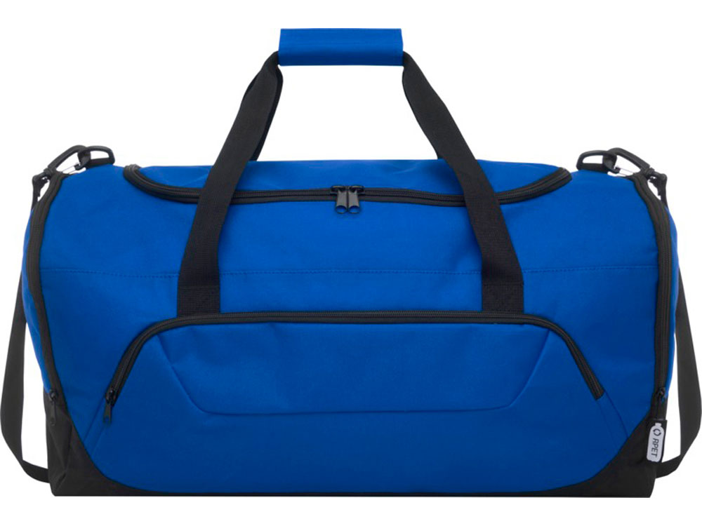 Прочная спортивная сумка, изготовленная на 100% из переработанного пластика, предназначенного для повторного использования, что способствует снижению количества пластиковых отходов. С большим основным отделением и передним карманом на молнии, мягким плечевым ремнем и мягкими ручками. Для изготовления этой сумки было переработано около 27 бутылок. 600D Полиэстер. -