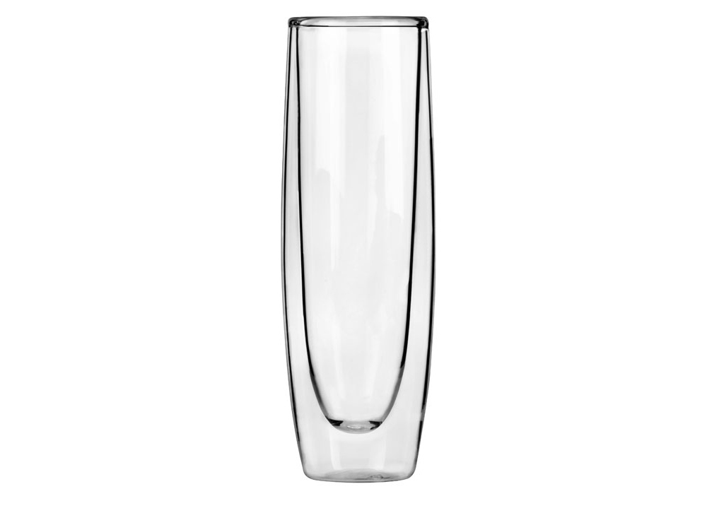 Бокал для шампанского от бренда Eat&Bite Select выполнен в необычной форме — в отличие от классического, Brut не имеет ножки. Форма самого сосуда осталась прежней, предназначенной специально для шампанского: вытянутый бокал позволяет насладиться красотой пузырьков, поднимающихся вверх, а двойные прозрачные стенки делают игру света еще интереснее. Материал бокала — боросиликатное стекло: менее хрупкое, более легкое, абсолютно безопасное для человека, оно прекрасно подходит для изготовления посуды.