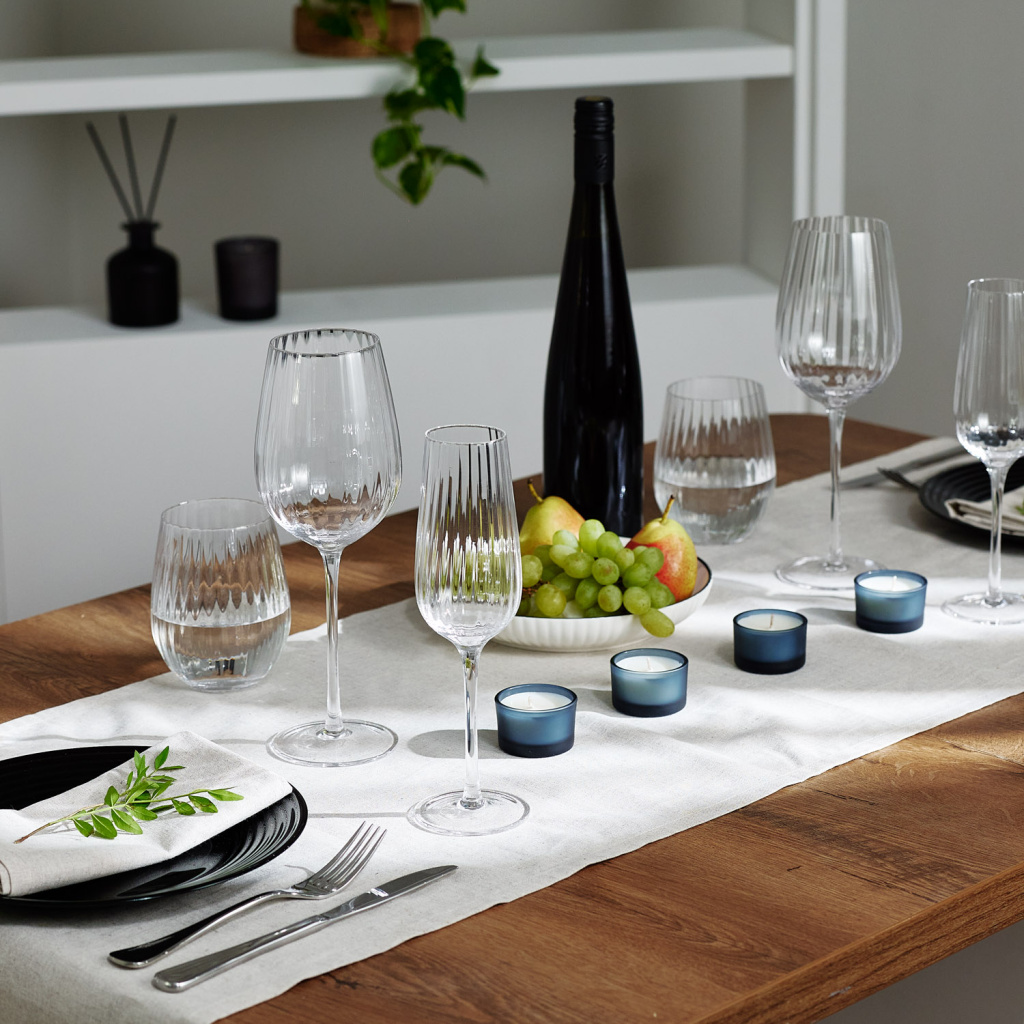 Секрет в уникальном рифлении, создающем игру света и тени, которая превращает дегустацию в искусство. Утонченный дизайн гармонично сочетается с любой сервировкой, от классической до современной. Создайте свой безупречный набор, дополнив его бокалами для шампанского и стаканами для воды.