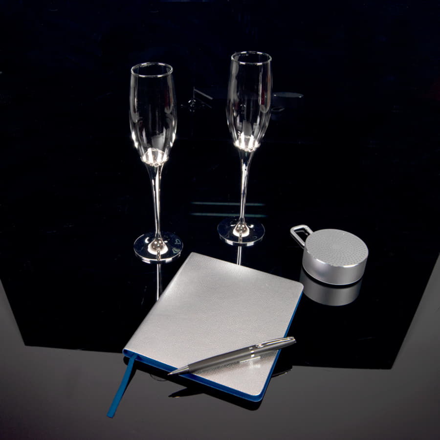 Бокалы для шампанского "Crystal" (2шт), Размер: D=6,8см, Н=25,2смМатериал: стекло, посеребренный металл, лаковое покрытие -