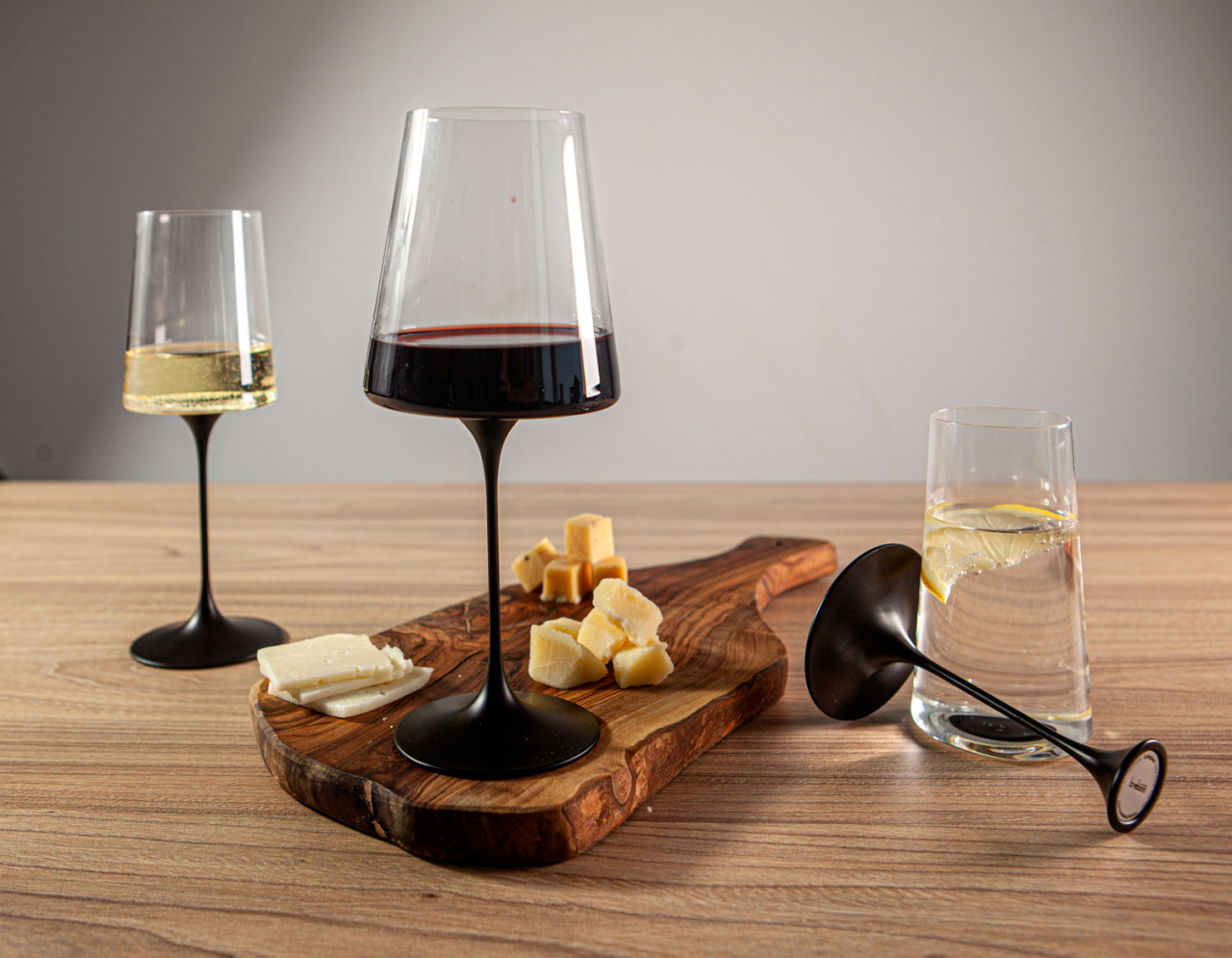 Используйте его как самостоятельный стакан для воды или моментально превращайте в элегантный бокал для красного вина, соединив с изящной алюминиевой ножкой черного цвета. Ваш стиль теперь может меняться так же легко, как и настроение.