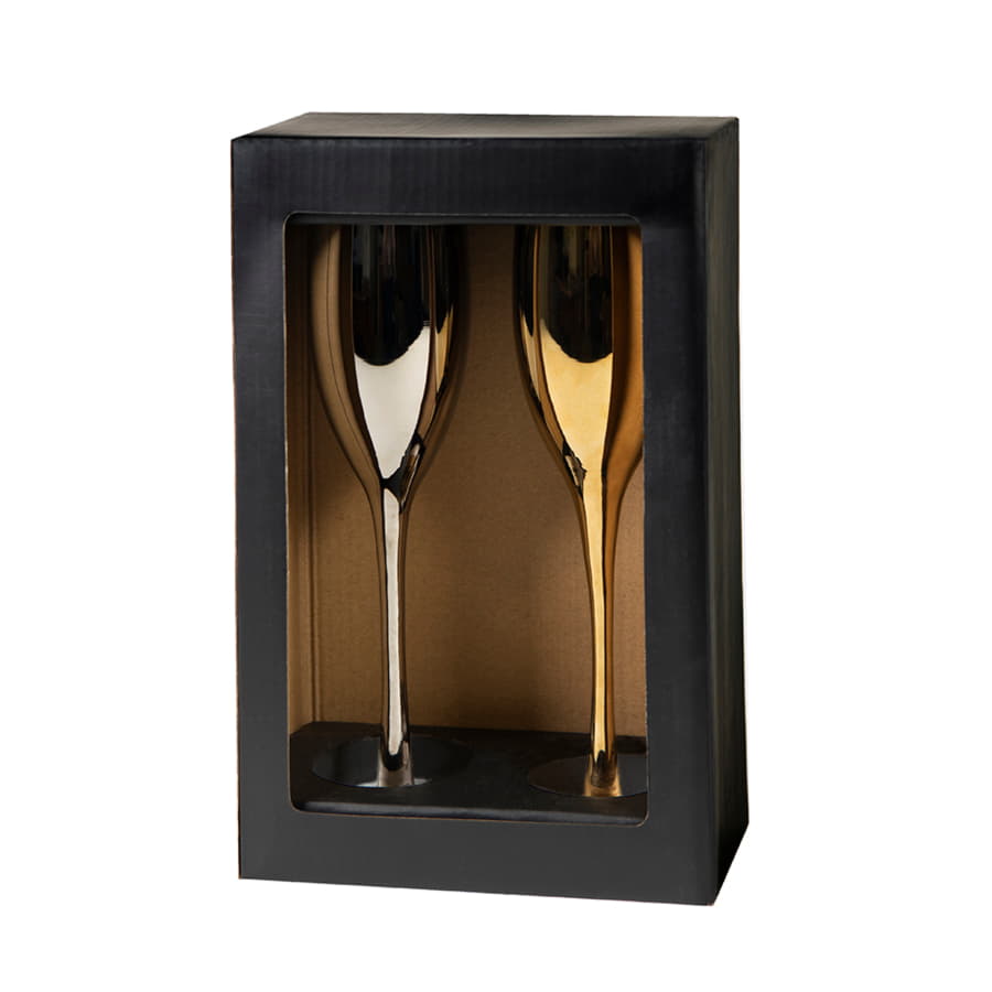 Бокалы для шампанского MOONSUN (2шт), золотой и серебяный, 26,5х25,3х9,5см, стекло