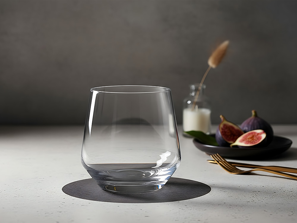 Стеклянный бокал необычной формы — вариант, чтобы разнообразить домашний мини-бар. Подходит не только для крепких напитков, но и для воды, коктейлей и соков.