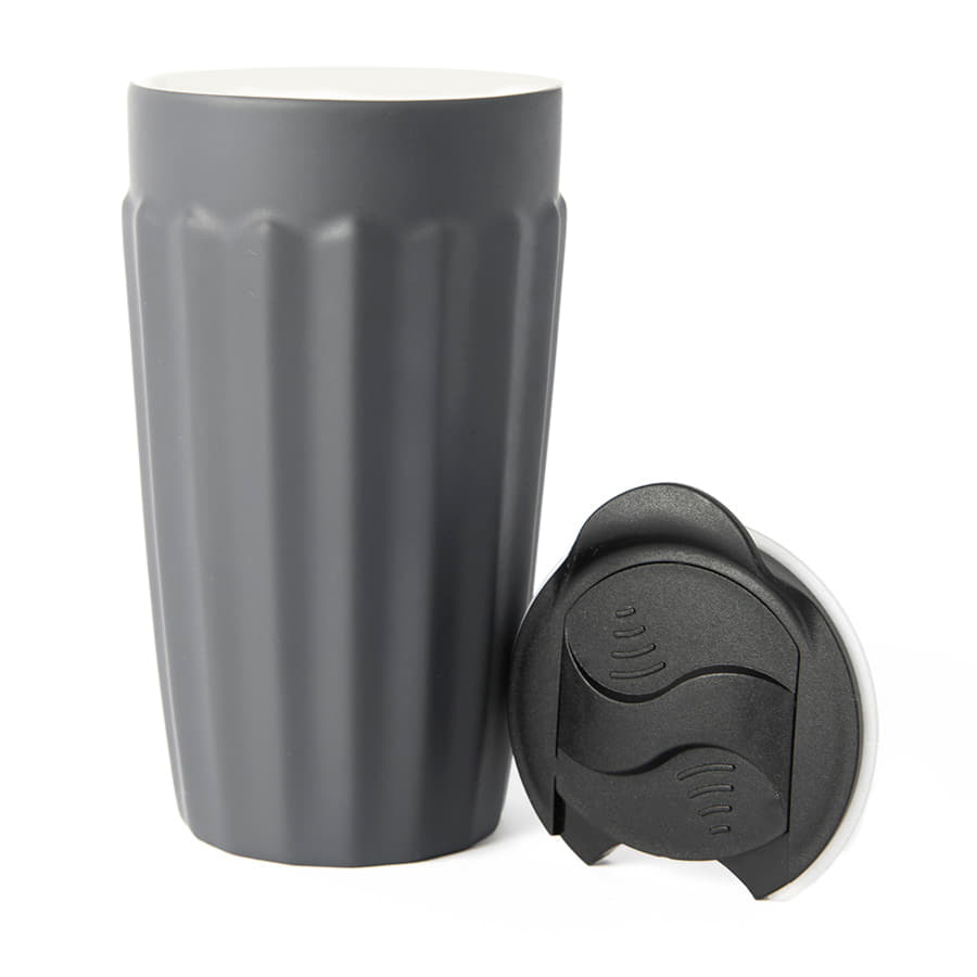 Керамический стакан с двойными стенками, имеет необычную форму с гранямиКорпус имеет прорезиненное покрытие, оно отлично подходит для лазерной гравировки: изображение получается ярким и выделяющимсяПластиковая крышка с силиконовым уплотнителем не даст вашему напитку быстро остыть, но рекомендуется использовать температуру напитков не выше 80СЦвет близкий к Pantone 433UПоскольку стакан имеет двойные стенки - на дне изделия находится технологическое отверстие, которое не является браком.Индивидуальная упаковка - коробка из крафтового картона -