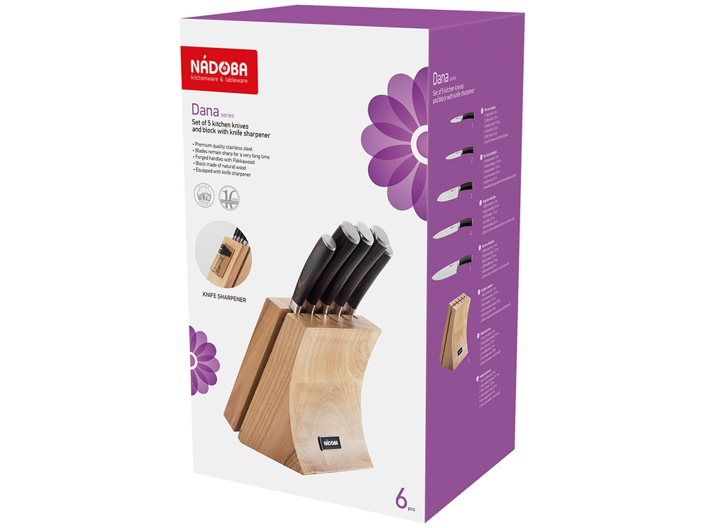 Набор из 5 кухонных ножей и блока для ножей с ножеточкой DANA