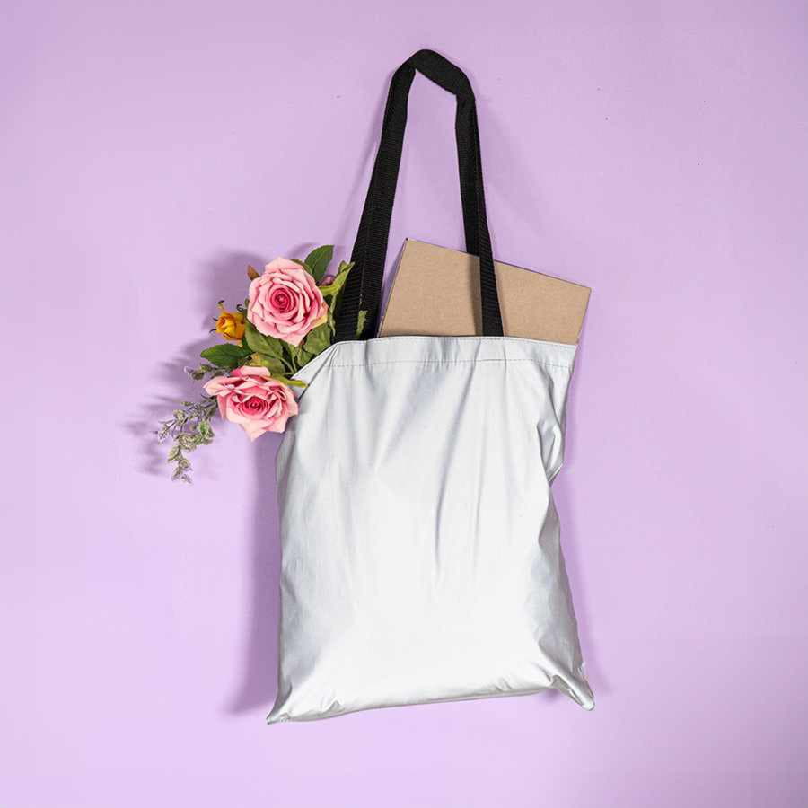 Сумка для покупок из полиэстера "Reflect"; светоотражающий серый; 38х42 см, длина ручек 70 см.