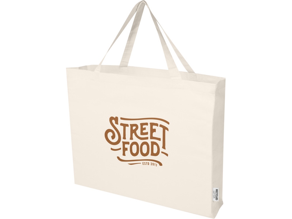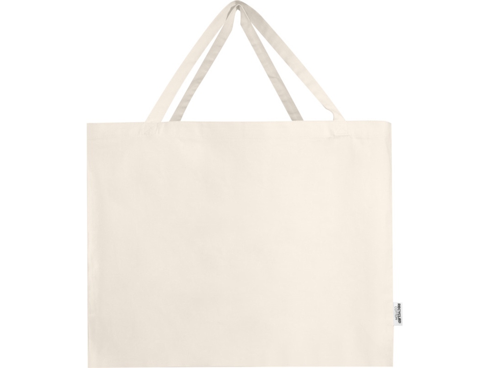 Эко-сумка Odessa, изготовленная из 100% переработанного хлопка, сертифицированного по стандарту GRS, создана для удобного ношения благодаря ручкам на плечо длиной 30 см и очень большому основному отделению с ластовицей. Независимо от того, хотите ли вы носить с собой тяжелые книги или продукты, эта сумка предназначена для удовлетворения любых потребностей. Методы печати, доступные для этой эко-сумки, также сертифицированы, что гарантирует прозрачность и сертификацию всей цепочки поставок. Хлопок плотностью 220 г/м² обеспечивает долговечность и надежность и позволяет переносить вес до 10 кг. Сделано в Индии. GRS certified recycled cotton.