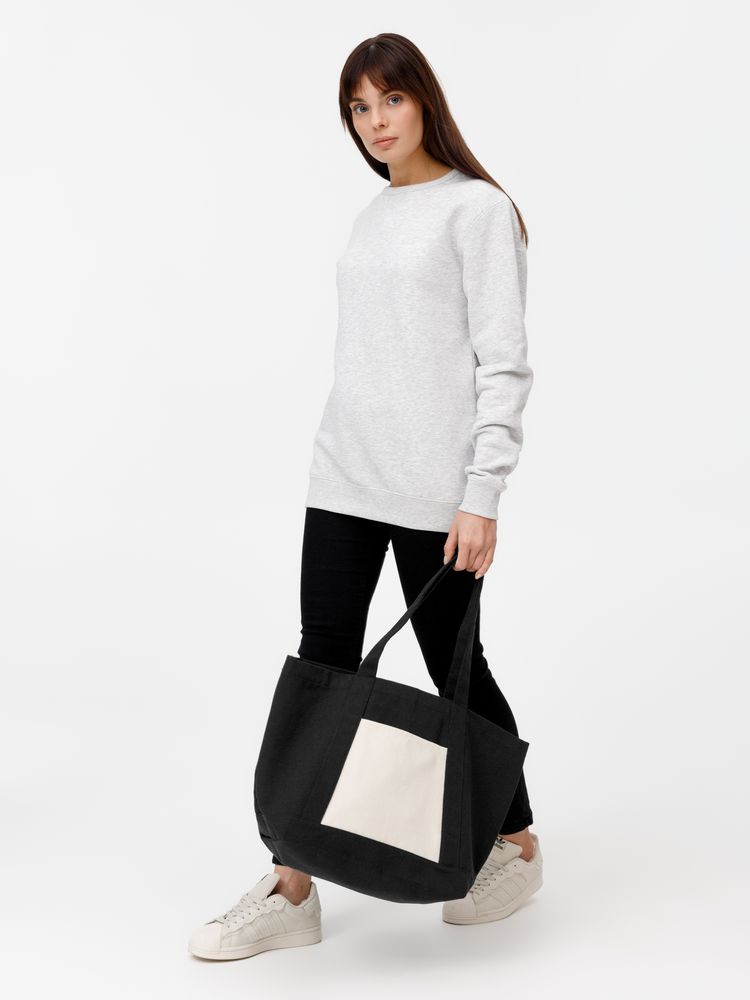 Эта многофункциональная холщовая сумка выдерживает нагрузку до 12 кг, что делает ее идеальным выбором для покупок, прогулок или похода в спортзал. Плотная ткань хорошо держит форму, внутренний и наружный карманы помогут удобно организовать пространство, а прочные швы, обработанные оверлоком, обеспечат долгий срок службы. Шопер на 40% выполнен из переработанного хлопка — дополнительный аргумент для тех, кто заботится о защите природы и экологичном использовании ресурсов.