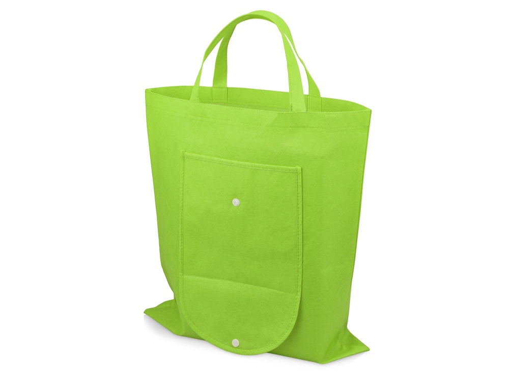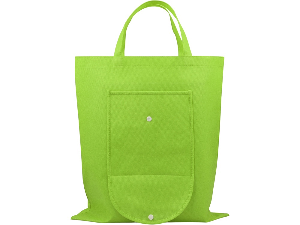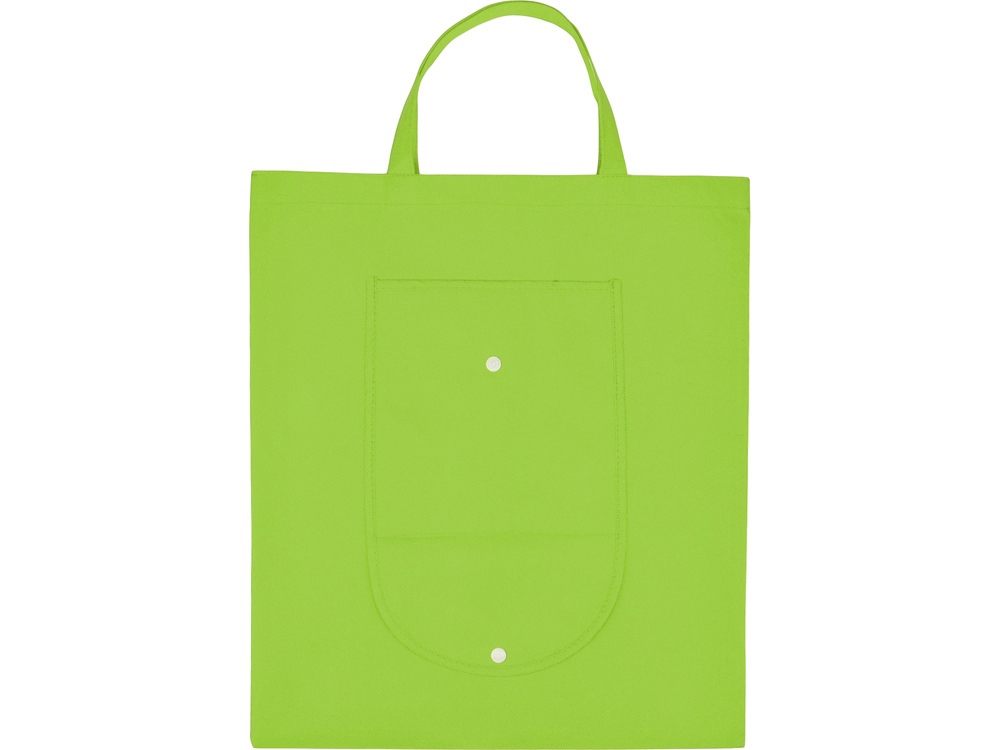 Вместительная складная сумка из нетканого материала с открытым основным отделением и карманом на пластиковой кнопке спереди. Многоразовая сумка- отличная альтернатива пластиковому пакету. Высота ручек 15 см. -