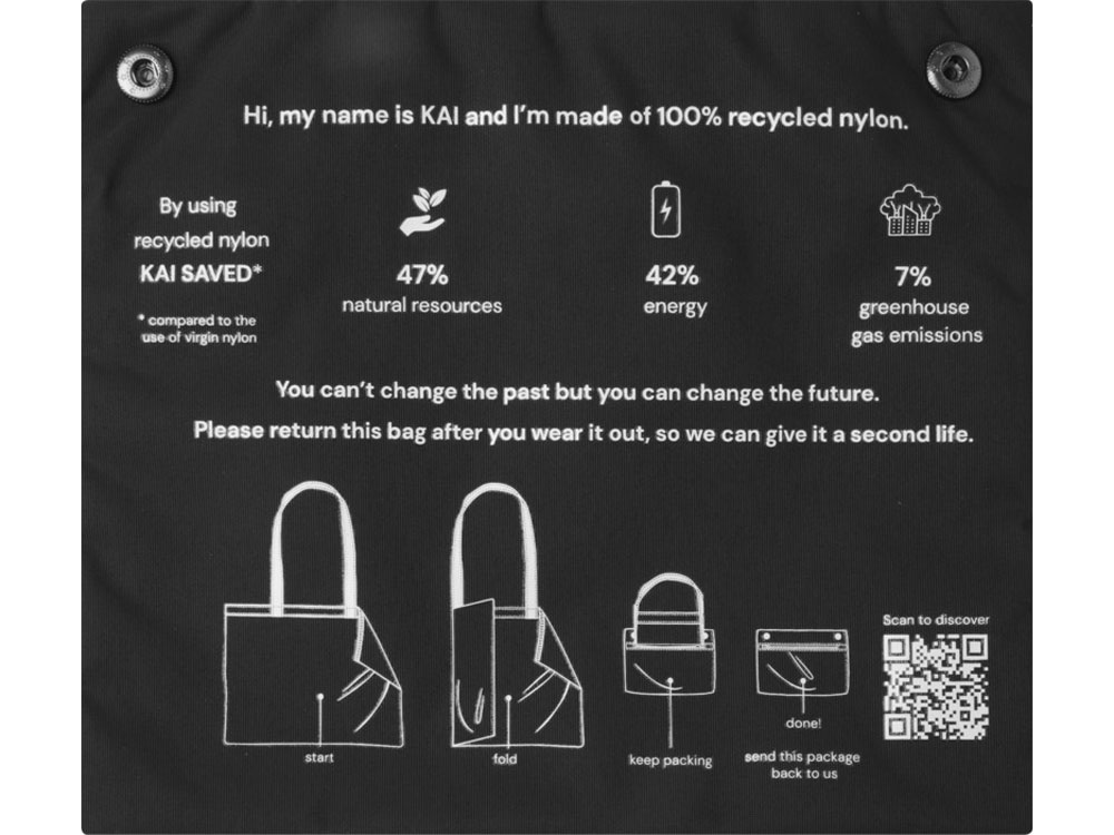 Круглая эко-сумка Kai из переработанного материала, сертифицированного согласно GRS, – самый большой положительный фактор с точки зрения экологических показателей. Более устойчивые исследования начинаются с лучшего дизайна – дизайна, оказывающего меньшее воздействие на окружающую среду. Общее среднее снижение воздействия, уже достигнутое при использовании 1 сумки, составляет: 7 % выбросов углерода, 42 % затрат на энергию и 47 % экологических затрат. Сделанная из переработанного нейлона плотностью 200T, сертифицированного согласно GRS, сумка Kai представляет собой классическую и неустаревающую эко-сумку, подходящую для повседневного использования. Место для печати — на кармане, который одновременно служит чехлом. Сумку можно вернуть с помощью программы возврата с использованием QR-кода, который предоставляет дополнительную информацию. -