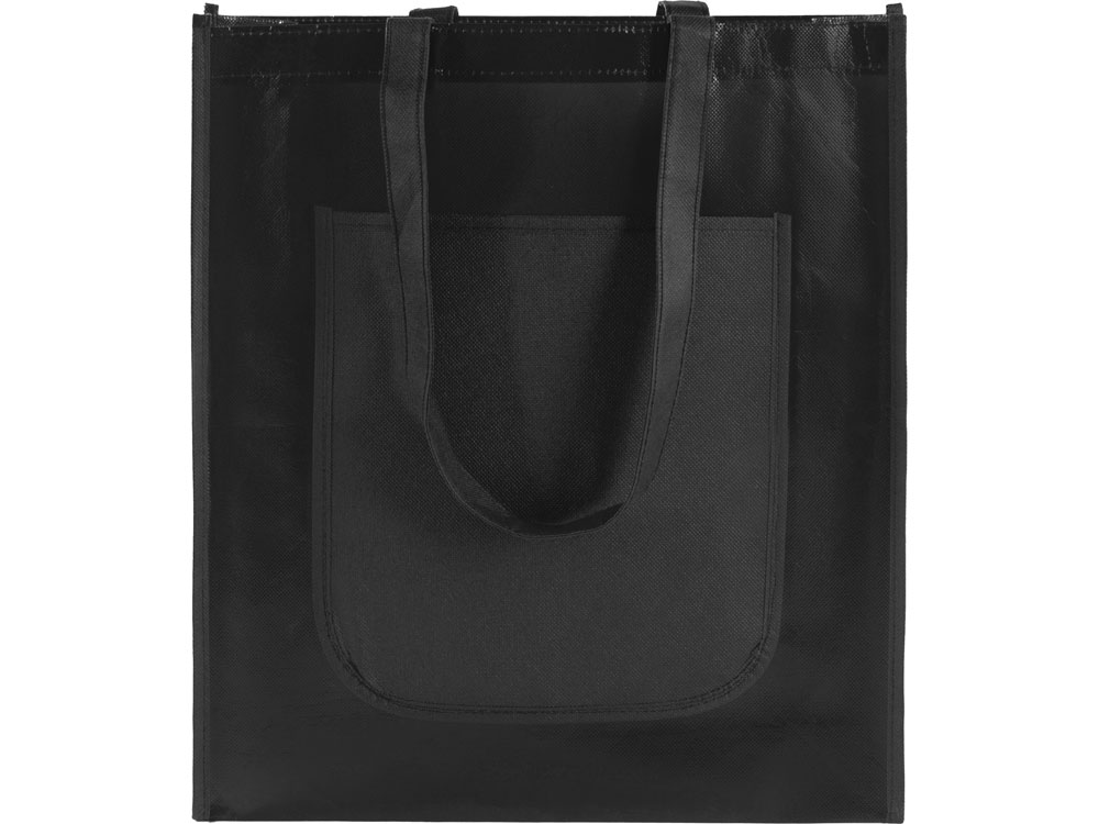 Большая вместительная и невесомая сумка с ламинированной поверхностью - всегда незаменимый помощник под рукой. Спереди расположен большой карман под ваш логотип. -