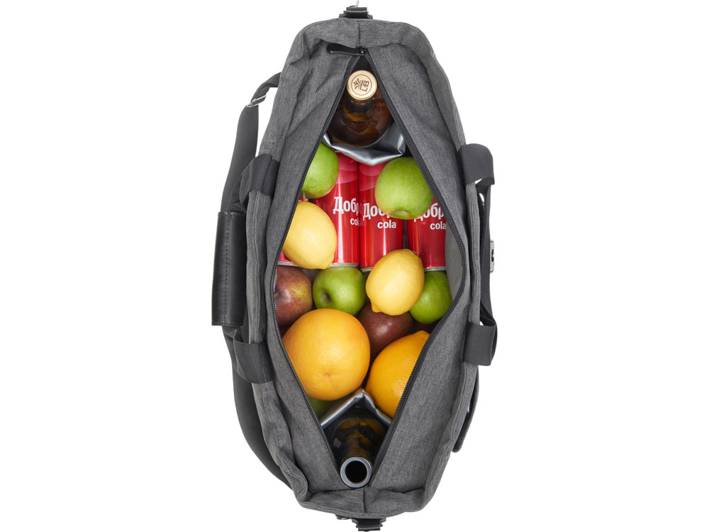 Большую вместительную сумку-холодильник удобно использовать для транспортировки охлаждённых или подогретых продуктов и бутылок с разнообразными напитками. Внутри по бокам сумки расположены 2 изотермических кармана для высоких бутылок. Основное отделение на молнии. 2 ручки с фиксатором на липучке для удобства носить в руке. Большой наружный карман на кнопке. Съемная лямка на плечо регулируется по длине. Выгодный бонус - штопор с бамбуковой ручкой в комплекте. -