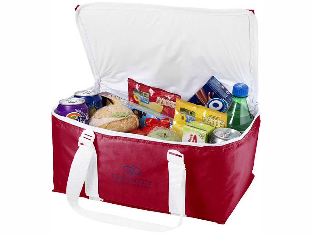 Большая сумка-холодильник на 17л вмещает до 12 банок. Стропу можно использовать для переноски полотенца. -