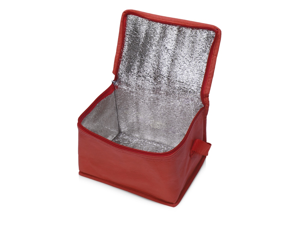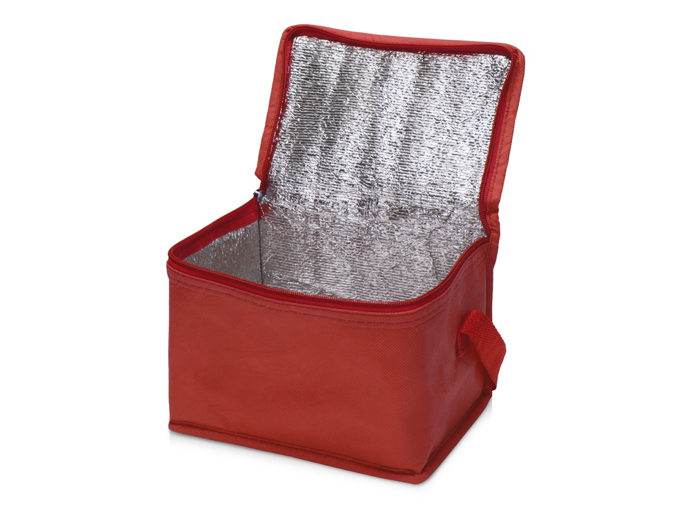 Сумка-холодильник из переработанного пластика. Вмещает 6 банок по 0.33 л. Закрывается на молнию. Удобная ручка для переноски. -