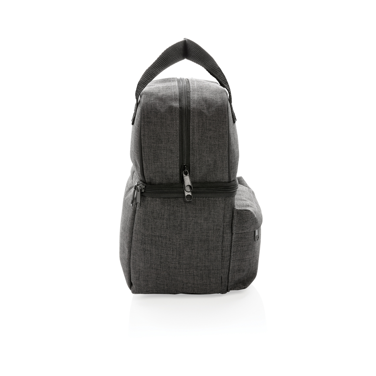 Сумка-холодильник из прочного полиэстера плотностью 600D с удобными ручками для переноски и изолированными отделениями. Просторное верхнее отделение отлично подходит для фруктов, закусок или печенья. В нижнем отделении квадратной формы можно разместить до 6 банок. Передний карман на молнии идеально подходит для небольших аксессуаров, например, для ключей.