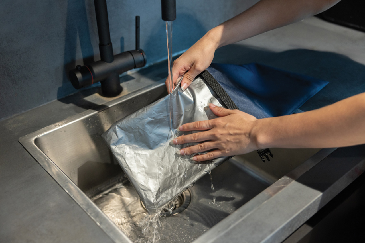 Термосумка Snackstrap изготовлена из переработанных ПЭТ-бутылок и представляет собой экологичную альтернативу одноразовым пакетам. Благодаря регулируемому размеру и герметичному закрытию, сохраняет ваш обед свежим и вкусным в течение всего дня. Легко моется и компактно складывается, что делает ее идеальной для использования в дороге. Простое и осознанное решение.
