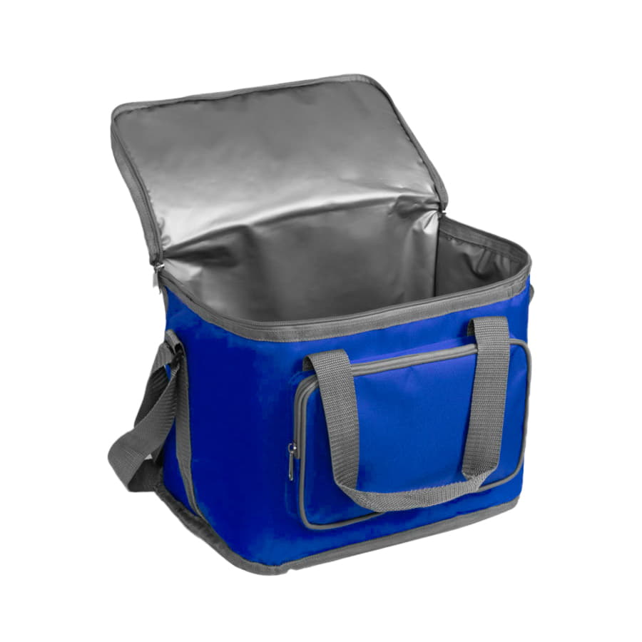 Сумка-холодильник из прочного полиэстера 600D с внутренней отделкой из PEVA (термопластик). На ручках предусмотрена вставка из нейлона для усиления прочности. Регулируемая длина наплечного ремня. BPA-free (не содержит бисфенол-А). -
