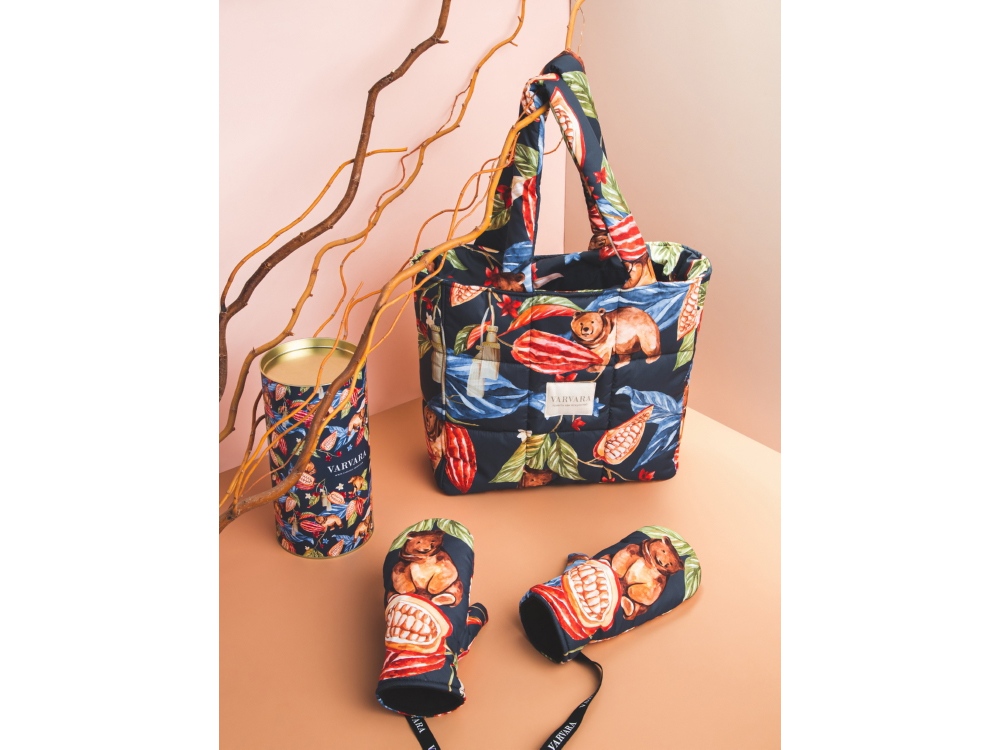 Стеганая сумка-шоппер с принтом ‘Мишки в шоколаде’ от российского бренда Varvara.