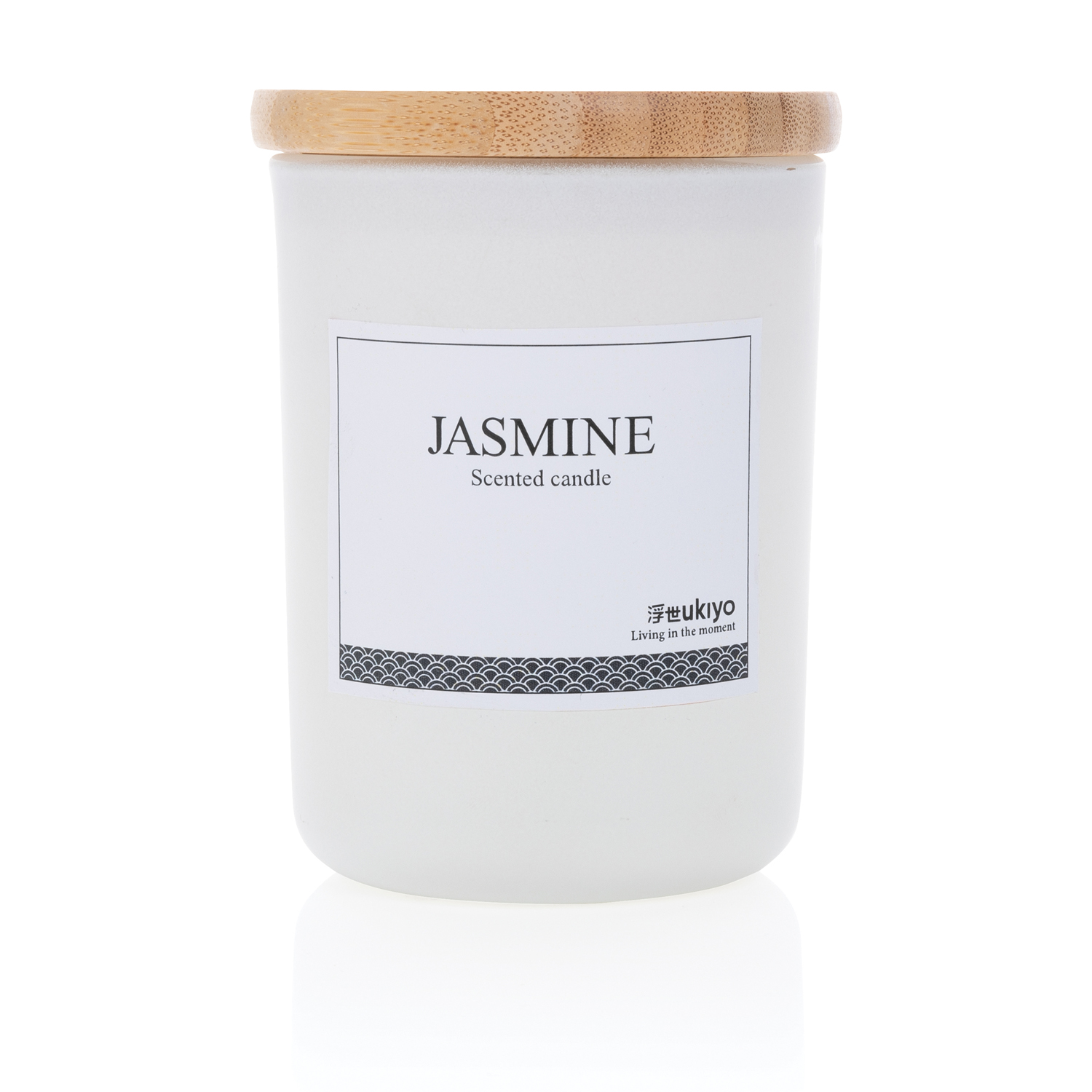 Создайте в доме уютную атмосферу с помощью ароматической свечи Ukiyo. Тонкий запах жасмина для особого настроения. Ароматическая свеча поставляется в стеклянном стакане с бамбуковой крышкой. Изготовлена из воска с 3% ароматической эссенцией (без продуктов животного происхождения). Время горения 30 часов.