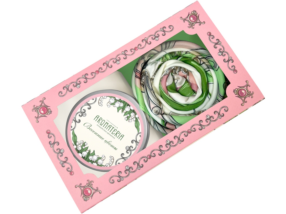 Набор: платок Ландыши и свеча Весенние цветы