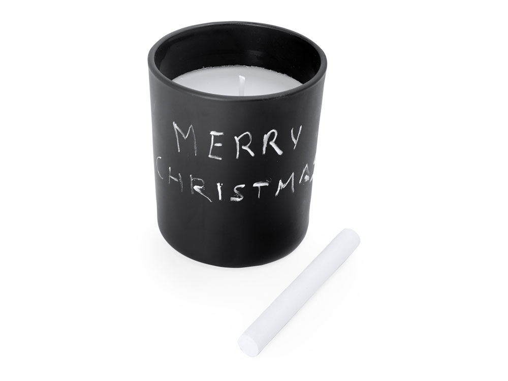 Ароматическая свеча в круглом черном керамическом подсвечнике. В комплект входит мел для рисования на подсвечнике. Белая свеча и фитиль. Аромат ванили. -