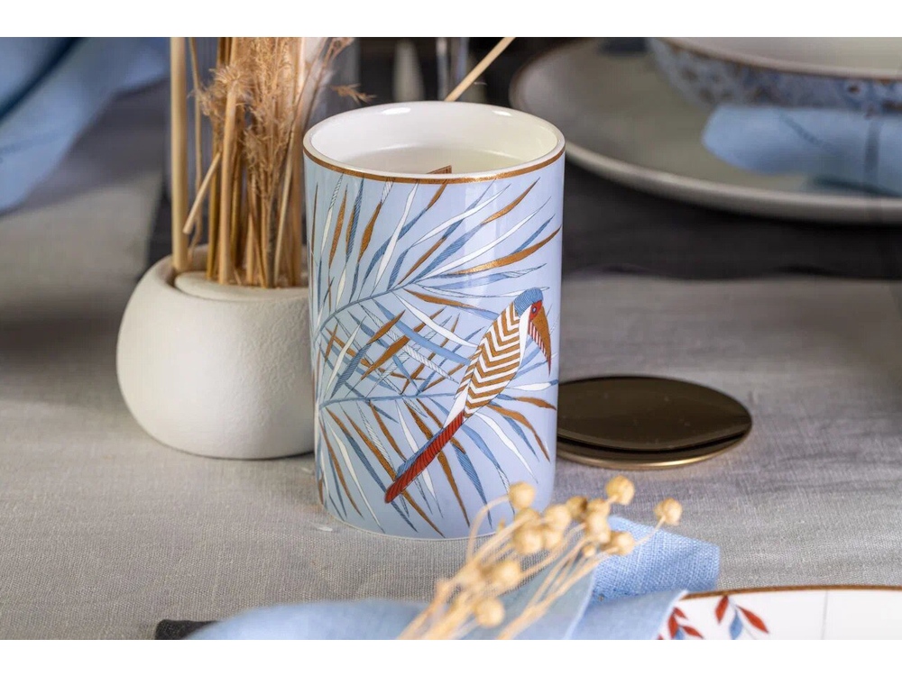 Китайский фарфор, соевый воск, деревянный фитиль, крышка- нержавеющая сталь с позолоченным покрытием, выполненное методом гальванизации